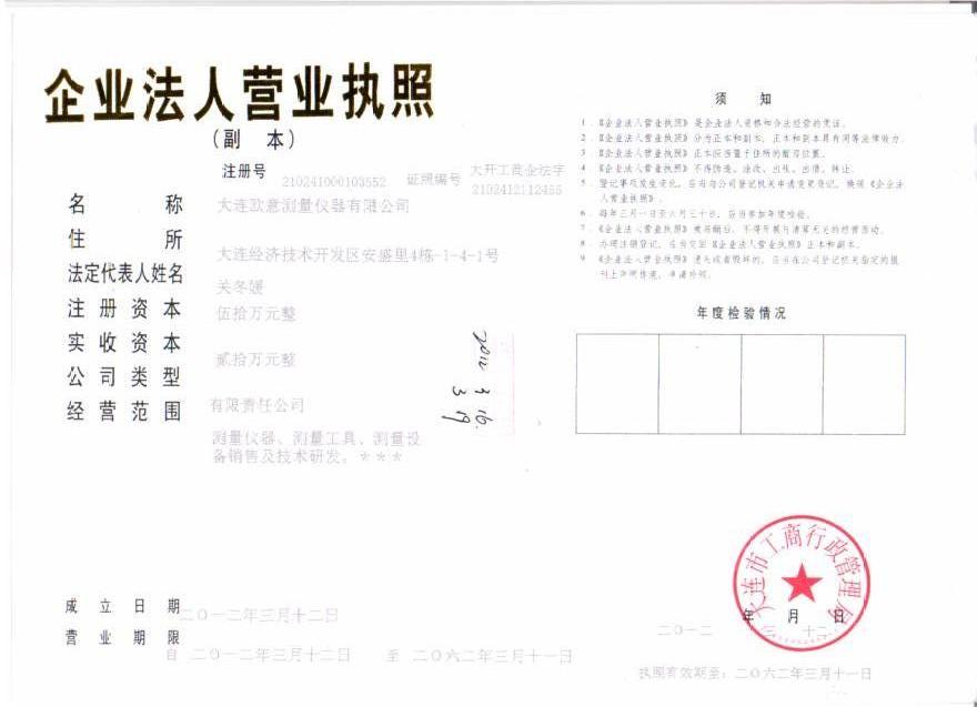 歡迎訪問大連歐意測量儀器有限公司!   店鋪星級: ☆☆☆☆☆